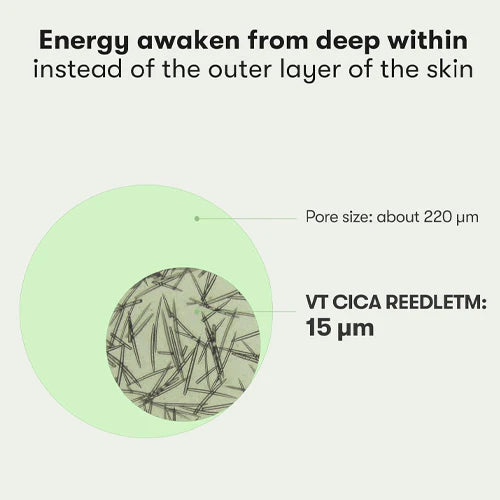 VT Reedle Shot is made with ingredients in the form of microneedles smaller than pores which become absorbed into the skin. By adding Centella Asiatica ingredients to the 99% pure microneedle-type ingredients, it opens the way for absorption as well as has a powerful soothing effect.